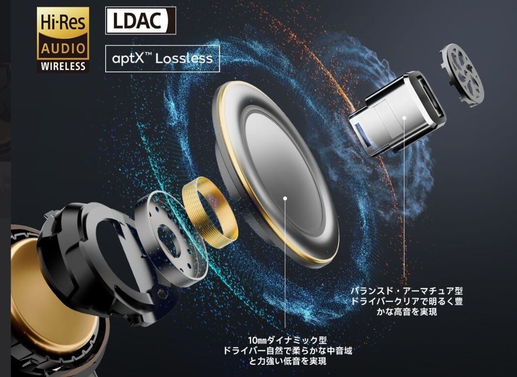 • ハイブリッドドライバーによる高音質:1万円台前半とは思えない解像度と迫力。