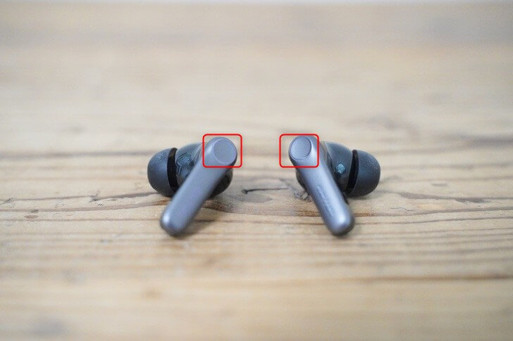 EarFun Air Pro 4+は静電容量式のタッチセンサーです。下記画像の赤枠を軽く指でタップすることで各種操作が可能です。