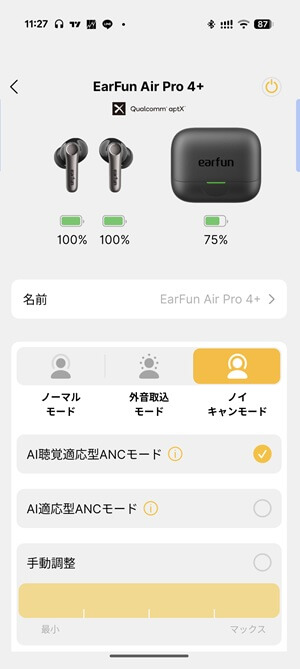 ちなみにアプリの設定からANCのモードを色々と変えることができます。