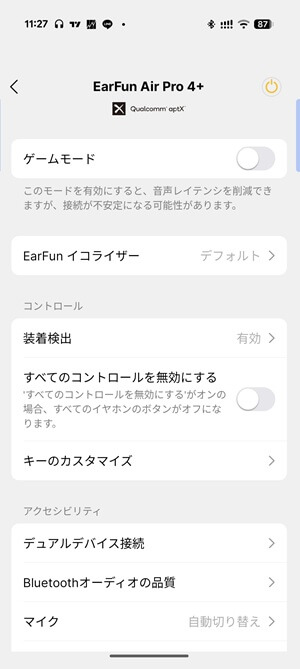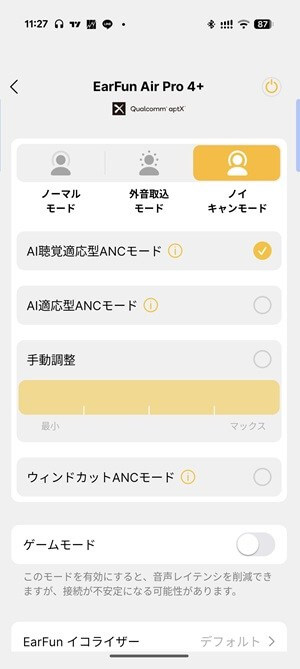 EarFun Air Pro 4+ゲームモード(低遅延モード)にも対応