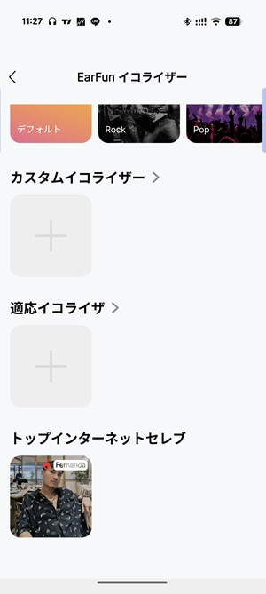 イコライザーもあります。低音を持ち上げたりと自分好みの音質に設定できます。