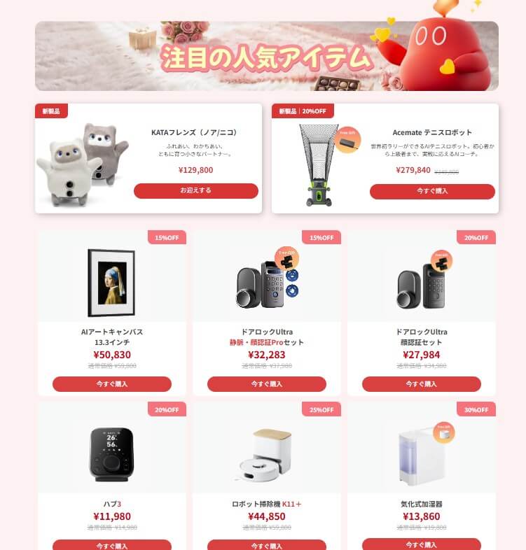 SwitchBot公式サイトから、AIを搭載した新しい家族、KATAフレンズの「ノア」と「ニコ」が登場しました。これを記念して、購入者限定の特別なキャンペーンが実施されています。