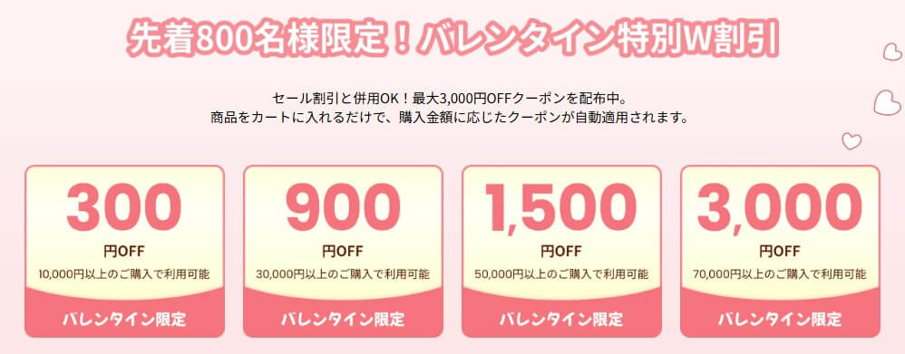 | 2026年2月10日~2月19日 | 最大56%オフ。 バレンタインキャンペーン ![]() |